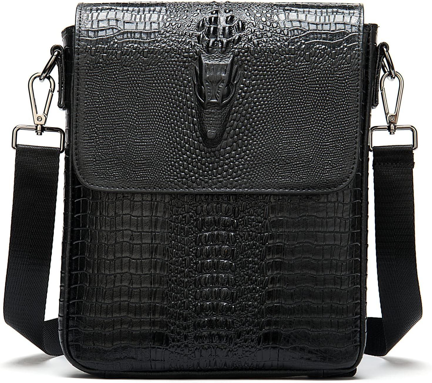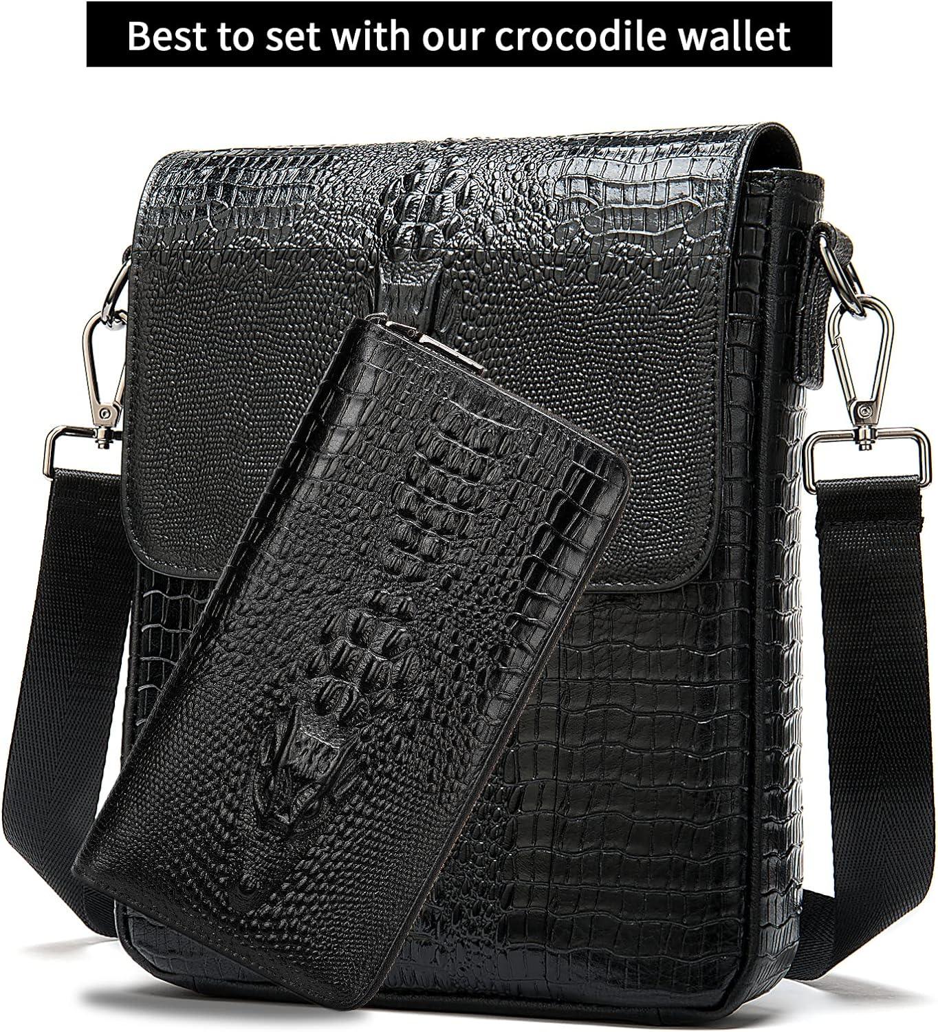 FR Fashion Co. 11" Men's Leather Crocodile Embossed Messenger Sling Bag - FR Fashion Co. FR Fashion Co. 11" Men's Leather Crocodile Embossed Messenger Sling Bag - FR Fashion Co.