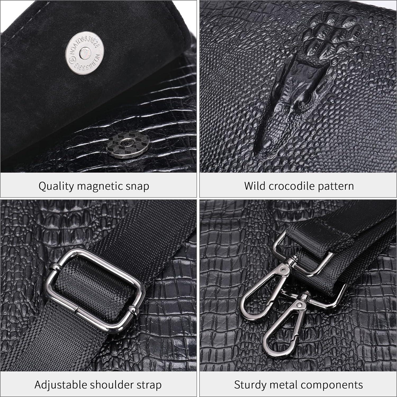 • High-Quality Materials: Expertly crafted from genuine cowhide leather with a unique crocodile embossed finish, offering both durability and a refined aesthetic.