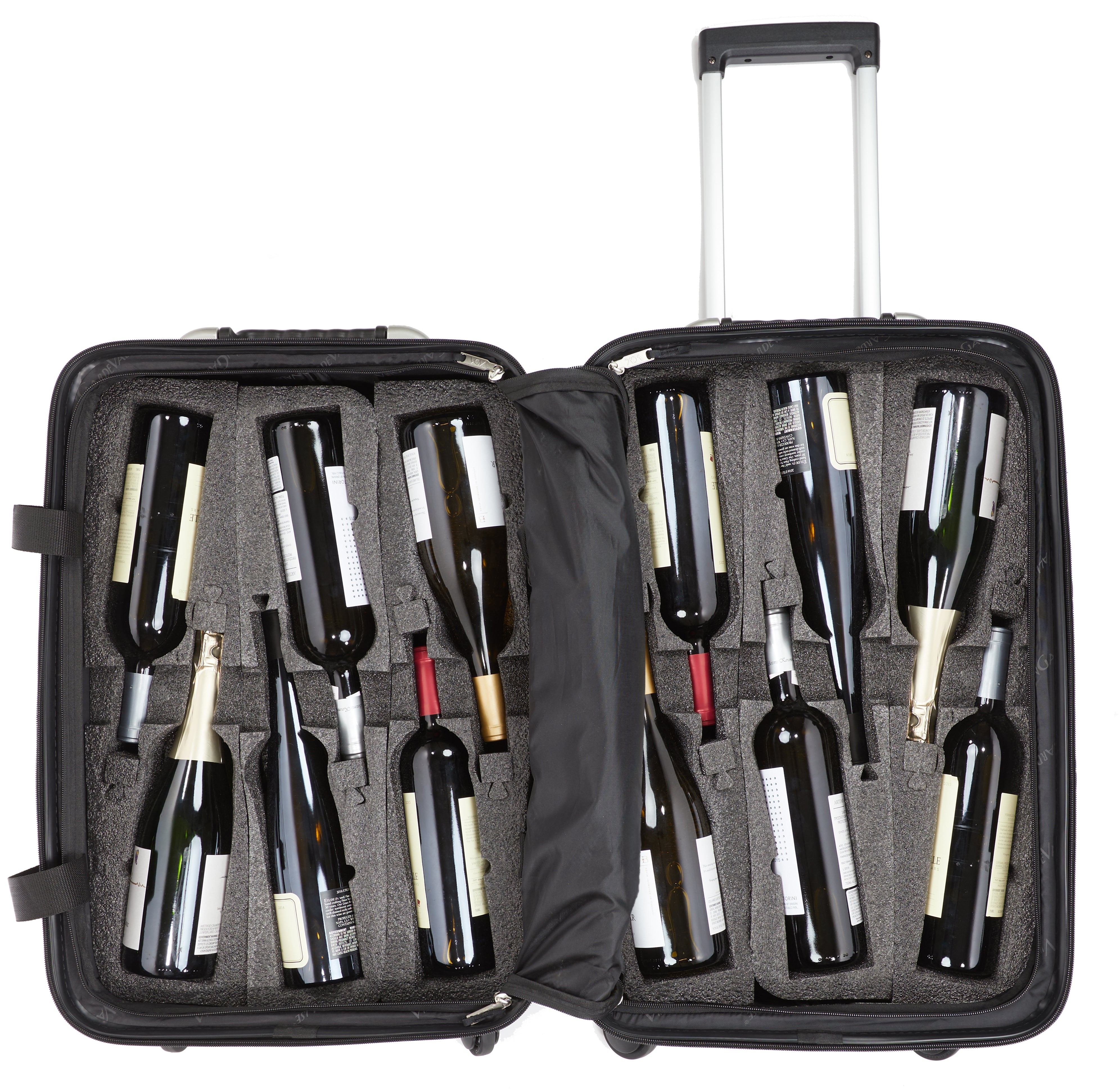 GRANDE MODEL CAPACITY- Deep foam patented inserts included to accommodate up to 12 bottles (750 ml) of wine. Inserts are removeable to travel with as many -or as few- bottles along with ample space for clothing and other travel items. Winner of the Wall Street Journal Best Wine Travel Solution.