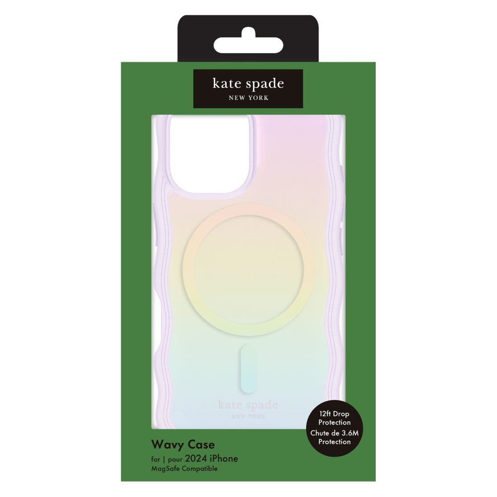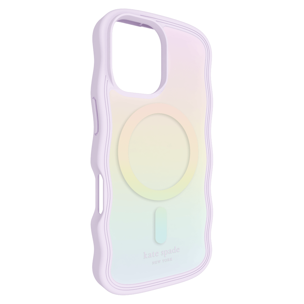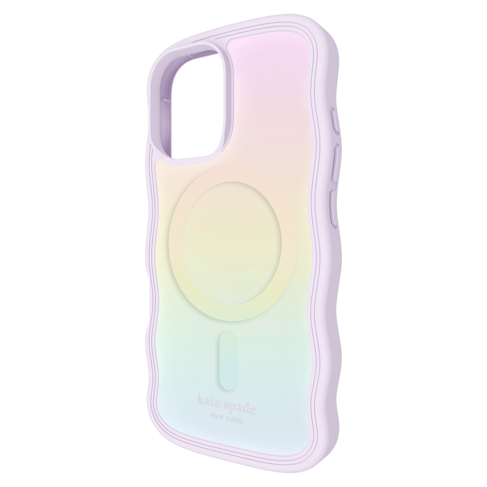 The kate spade new york Wavy MagSafe Phone Case adds a fun touch to your mirror selfies with a unique wavy design and iridescent ombre twist! This phone case is made to keep up with your daily to-do list thanks to 12-foot drop protection, while built-in magnets let you wirelessly charge and accessor