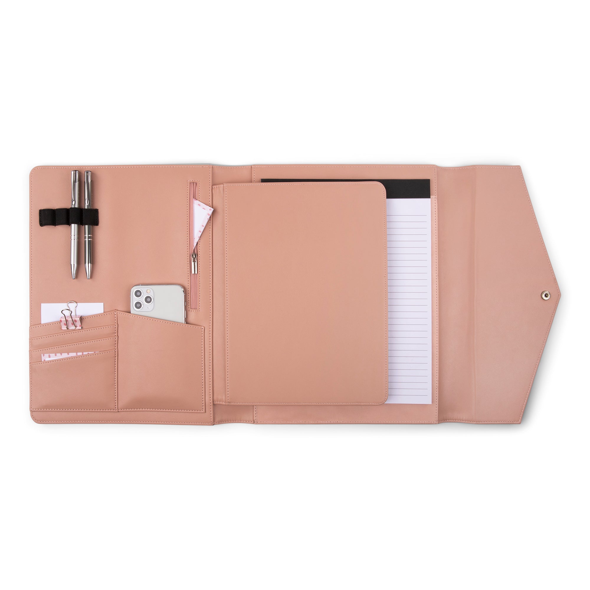 Discover our versatile vegan leather writing case featuring a padded tablet section, organizer panel, and multiple pockets for pens, cards, and personal items. Perfect for keeping your essentials organized on the go!