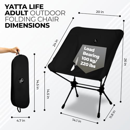 - Versatile and Portable Outdoor Chair: YATTA LIFE camping chair is the perfect companion for all your outdoor adventures. Whether you need a beach chair for lounging by the shore, a fishing chair for your next big catch, or a folding camping chair for your campsite, this lightweight and ergonomic chair has you covered. It’s easy to carry and store, making it ideal for backpacking and other on-the-go activities.