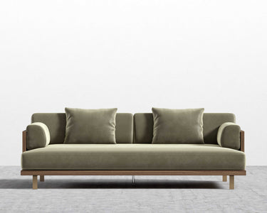 The Maria Sofa combines luxurious design and ultimate comfort, featuring plush velvet upholstery in a chic Olive Green finish. Built with a kiln-dried hardwood frame, reinforced corners, and 8-gauge sinuous springs, this sofa is both durable and incredibly soft. The cushioning includes high-density foam topped with 100% goose feathers for a cloud-like feel. Finished with brass legs and a smooth walnut frame, the Maria Sofa adds an elegant touch to any modern home. Available in Olive Green, Warm Taupe, and Alesund. Accident Protection Plans are available for worry-free ownership.