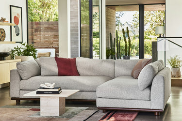 Experience unparalleled comfort with the Miller Sectional. Designed with a low back, deep seat, and plush pillow back, this contemporary sectional invites relaxation in any living space. Built with a sturdy frame reinforced with kiln-dried solid wood and corner blocking, it provides lasting durability. The high-density foam core cushions are wrapped in eco-friendly fiber for lofted comfort. Choose from left- or right-facing orientation and pet-friendly fabrics in Essence Ash. The Miller Sectional’s stylish, angled arms are perfect for movie nights or casual gatherings, making it an ideal choice for families and social spaces alike.