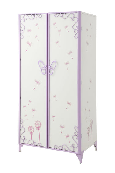 Elegant Butterfly Design: This wardrobe features intricately designed metal doors with butterfly and scrolled trim, accented by PU leather purple dandelion decorations, creating a sophisticated and unique appearance.