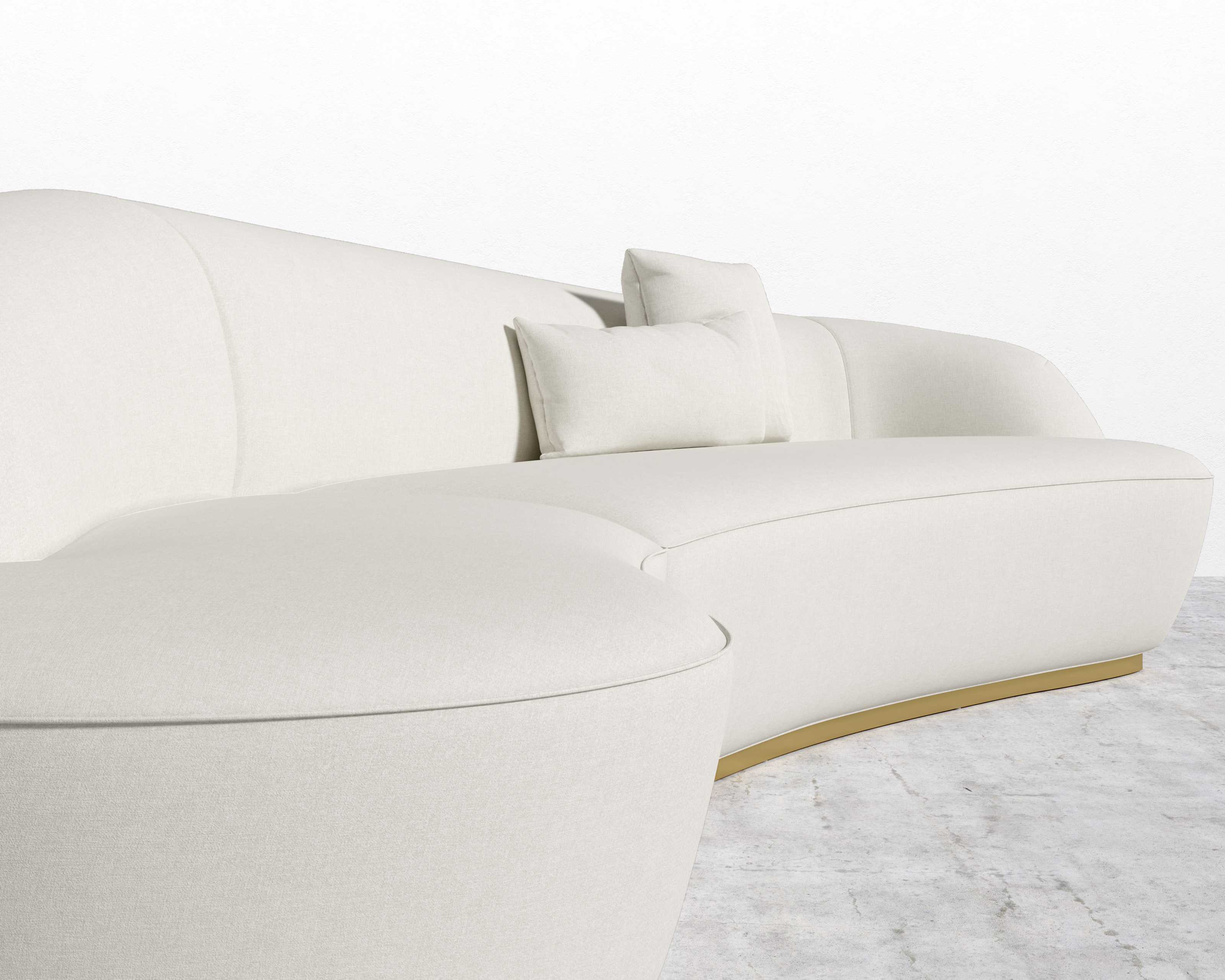 The Reya Curved Sectional in Modern Felt combines grand design with a comfortable, medium-firm feel, perfect for adding a statement piece to any living space. Crafted in a luxurious Alesund fabric, this sectional’s elegantly curved chaise can be positioned on the left or right, making it ideal for larger spaces and adaptable to any layout. Built with Rove Concepts’ commitment to sustainability, the Reya features eco-conscious construction and materials. This sectional, available with an optional accident protection plan, is in stock and ready to ship.