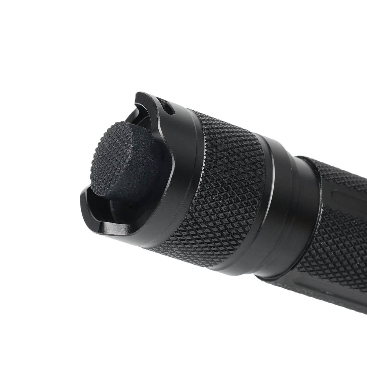The torch has two different switches for managing the interface: a switch is located in the tail that allows you to turn the torch on or off and an electronic side switch that allows you to vary the levels. Inside the side switch there is a small status LED that allows you to know the residual capacity of the cell