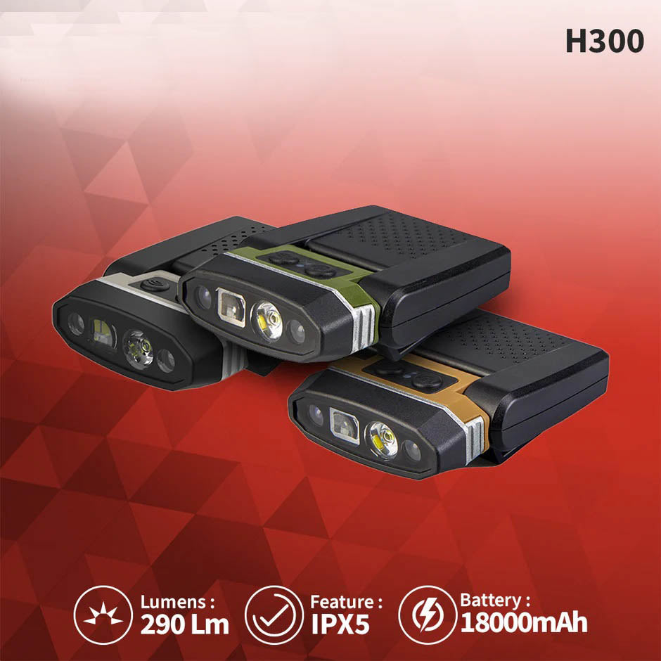 Powered by a 1800mAh battery, the H300 ensures extended usage with a battery life ranging from 3.5 to 93 hours, depending on the selected brightness mode. The headlamp is equipped with a convenient USB charging port, enabling a quick recharge in just 2.7 hours from empty. The 5V=1A input makes it compatible with various charging sources, adding to its versatility and convenience.
