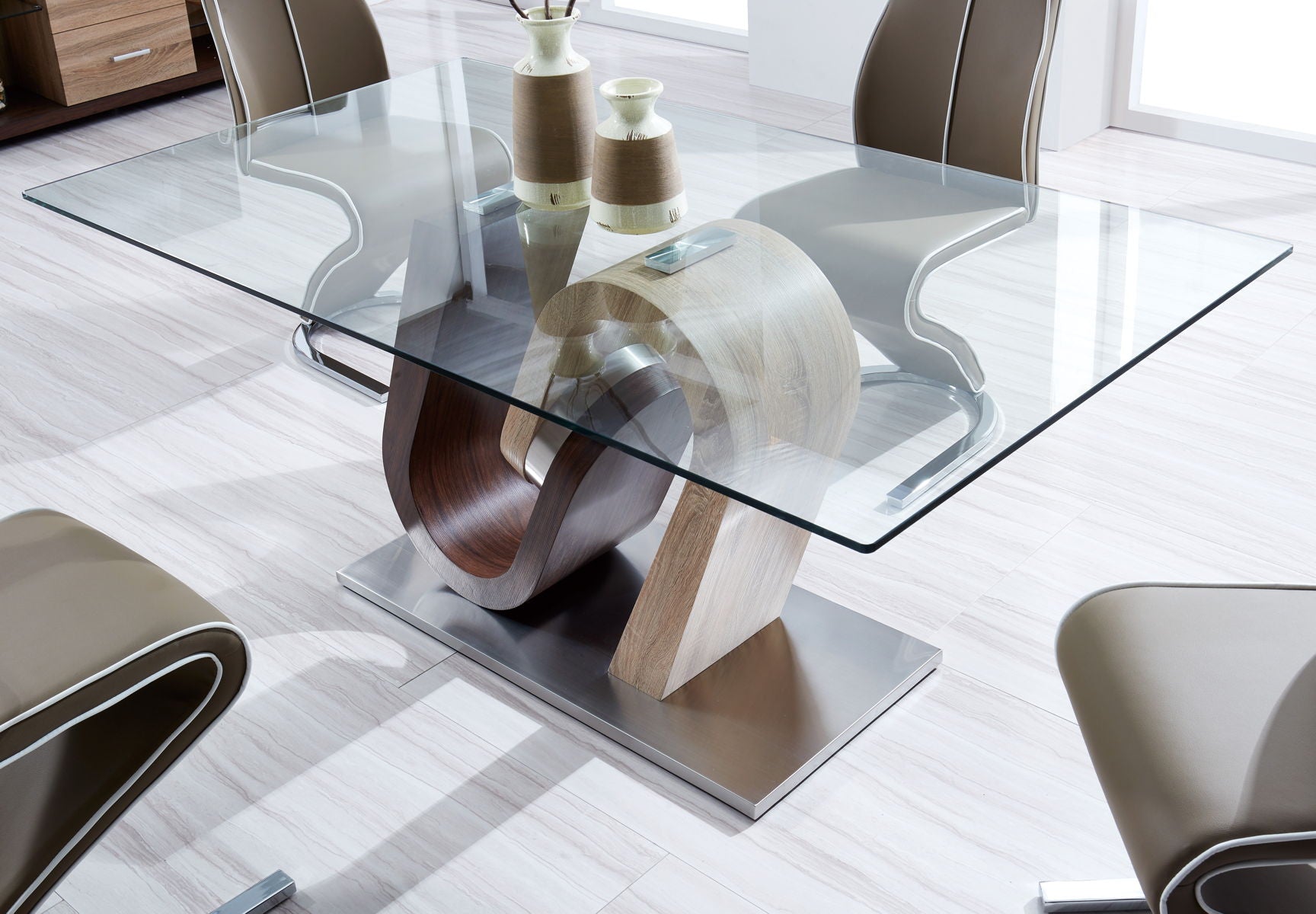 Elegant Finish: The TONY DINING TABLE features a sophisticated oak and walnut finish that adds a touch of elegance to any dining space, complementing both modern and traditional decor styles.