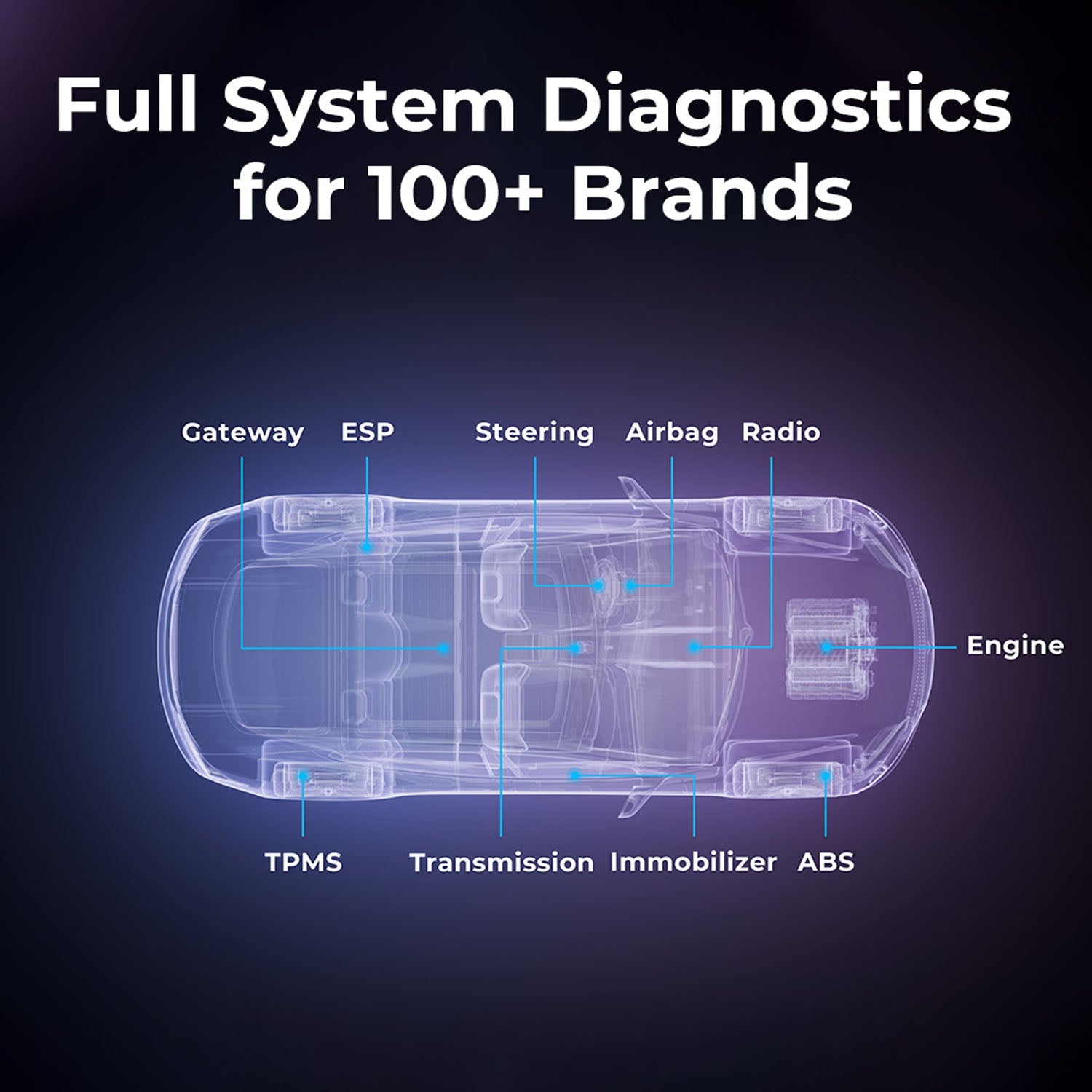 Get a complete diagnostic report on over 100 different car brands with the UltraDiag scanner. This powerful tool lets you perform a comprehensive scan through all vehicle systems, including engine, transmission, airbag, ABS, ESP, TPMS, immobilizer, gateway, steering, radio, and air conditioning. You'll have access to all the information you need to get your vehicle running smoothly again. No more guesswork - the UltraDiag scanner provides you with the complete picture of your car's health.