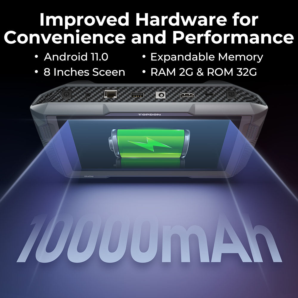 The UltraDiag features a long-lasting 10000mAh battery to save technicians from repeated recharges throughout the day. Android 11.0 makes for faster user interface and processing.