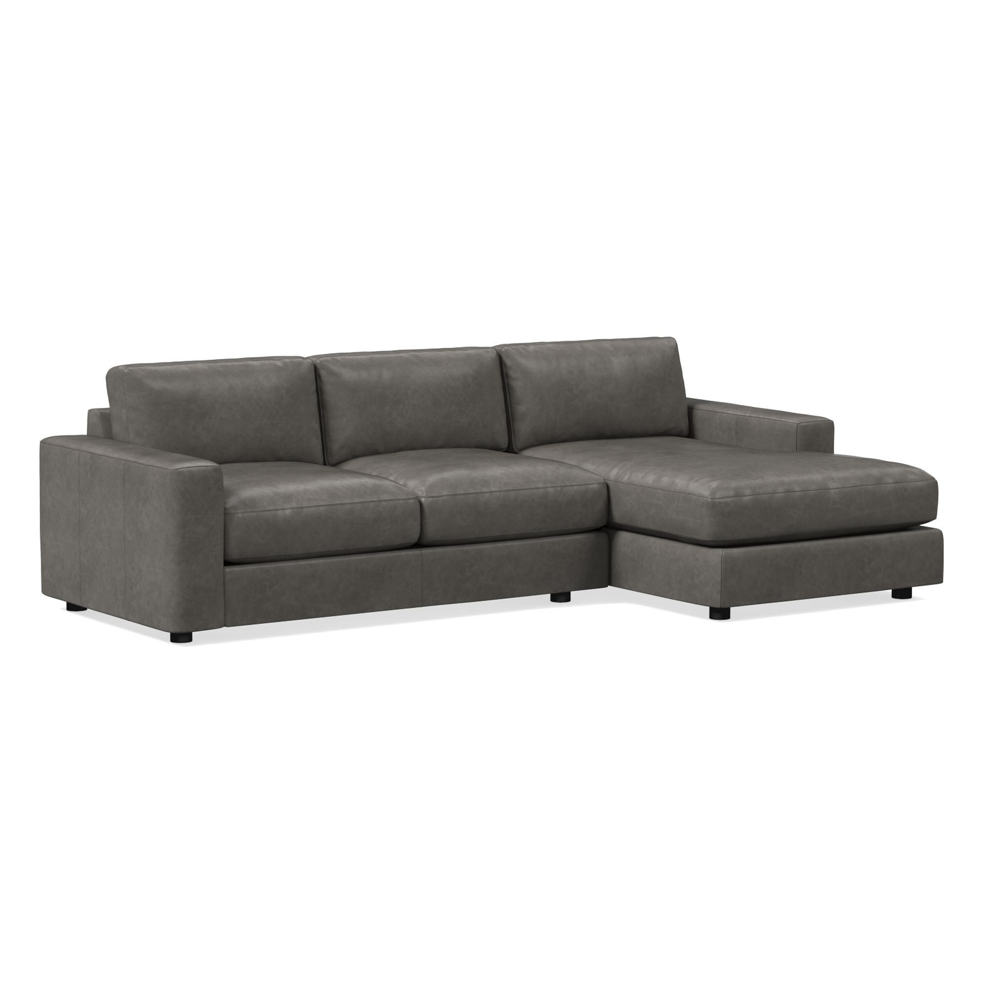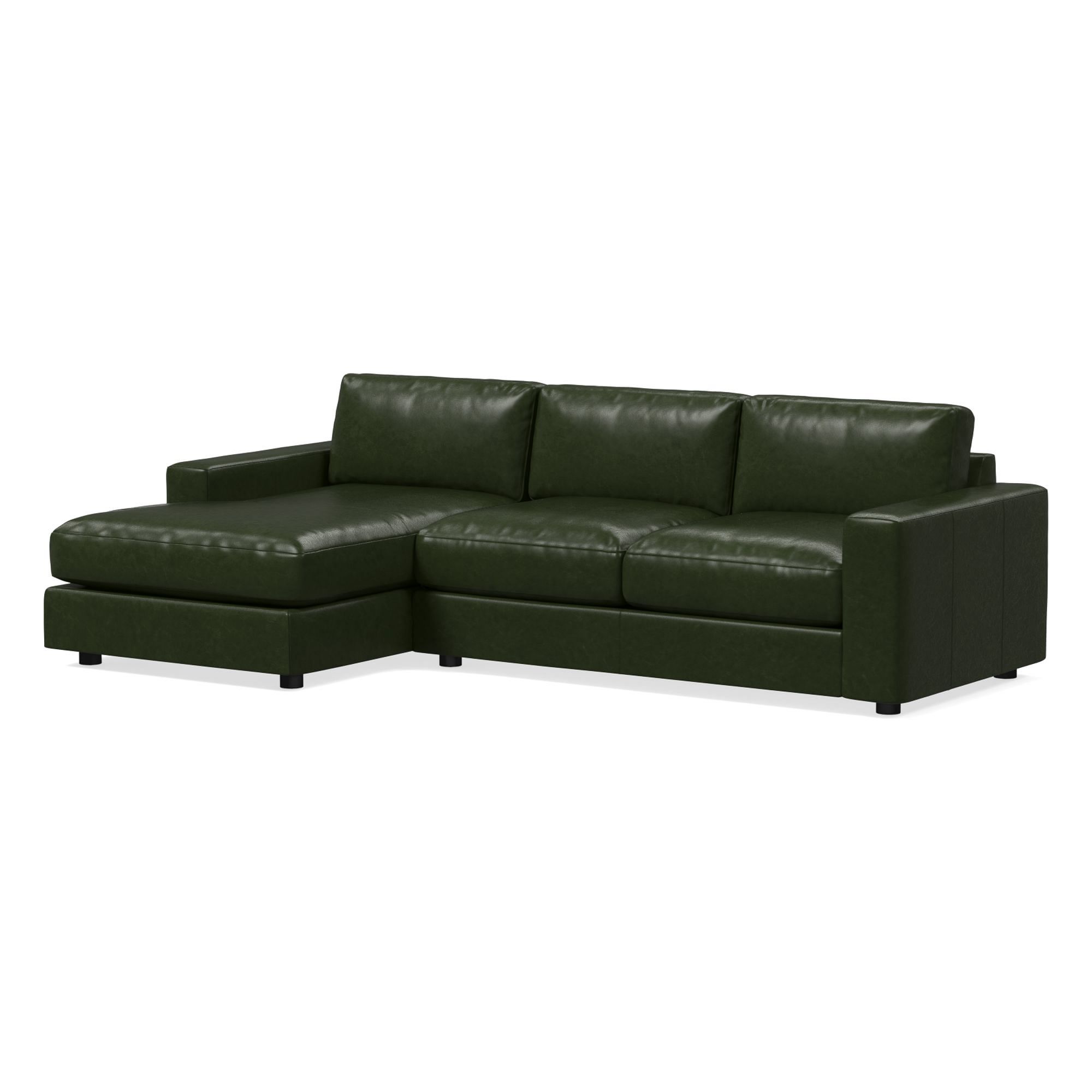 The Urban 2-Piece Chaise Sectional is a timeless addition to any living space with its clean lines and deep, comfortable seating. Upholstered in rich, saddle leather with a warm Nut tone, this sectional combines style and durability. Built on a solid and engineered hardwood frame with kiln-dried wood for added strength, this piece is perfect for both residential and contract-grade settings. With fiber-wrapped, high-resiliency foam seat cushions, this sectional offers a soft seating experience. Removable cushions with zip-off covers make it easy to maintain. Available in both right and left configurations, the Urban Sectional provides flexibility to suit your space.
