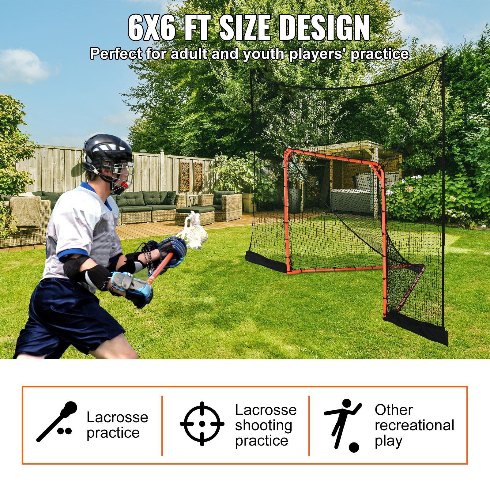 PRODUCT DESCRIPTION VEVOR Hockey and Lacrosse Goal Backstop with Extended Coverage, 12' x 9' Lacrosse Net, Complete Accessories Training Net, Quick Easy Setup Backyard Lacrosse Equipment, Perfect for Youth Adult Training