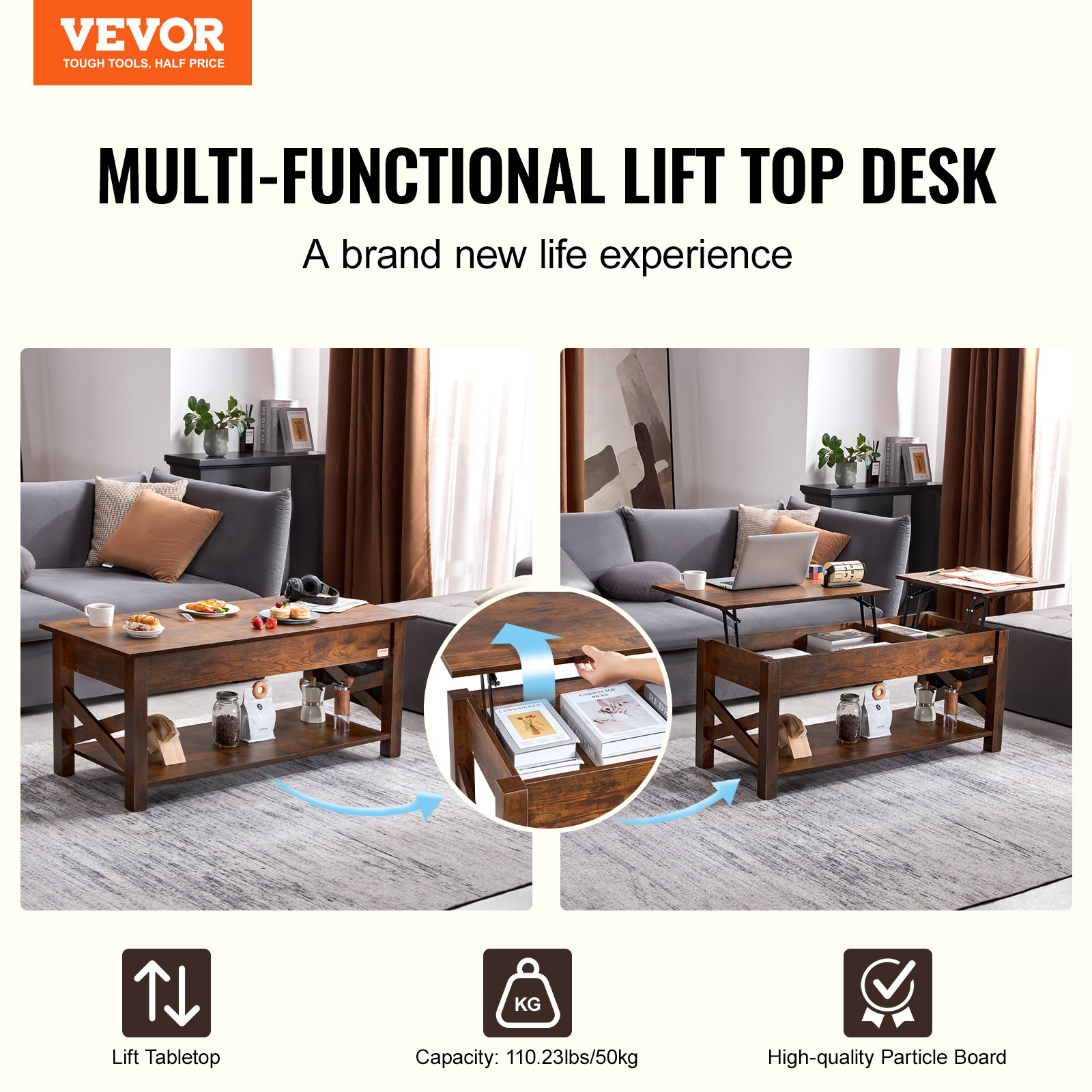PRODUCT DESCRIPTION VEVOR Lift Top Coffee Table 47.5" Rectangle Coffee Table for Living Room Brown