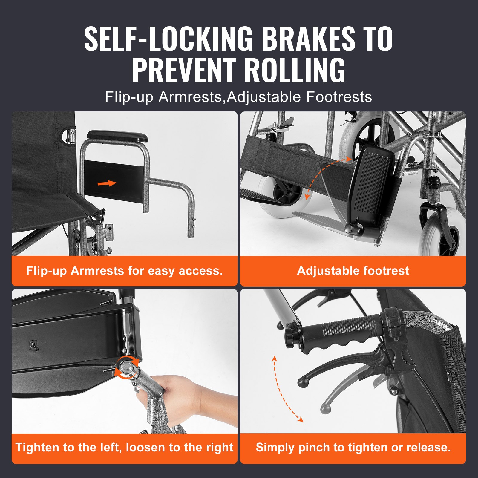 PRODUCT DESCRIPTION VEVOR Wheelchair Steel Transport Chair Foldable Wheelchair 24-In W Seat 300lbs