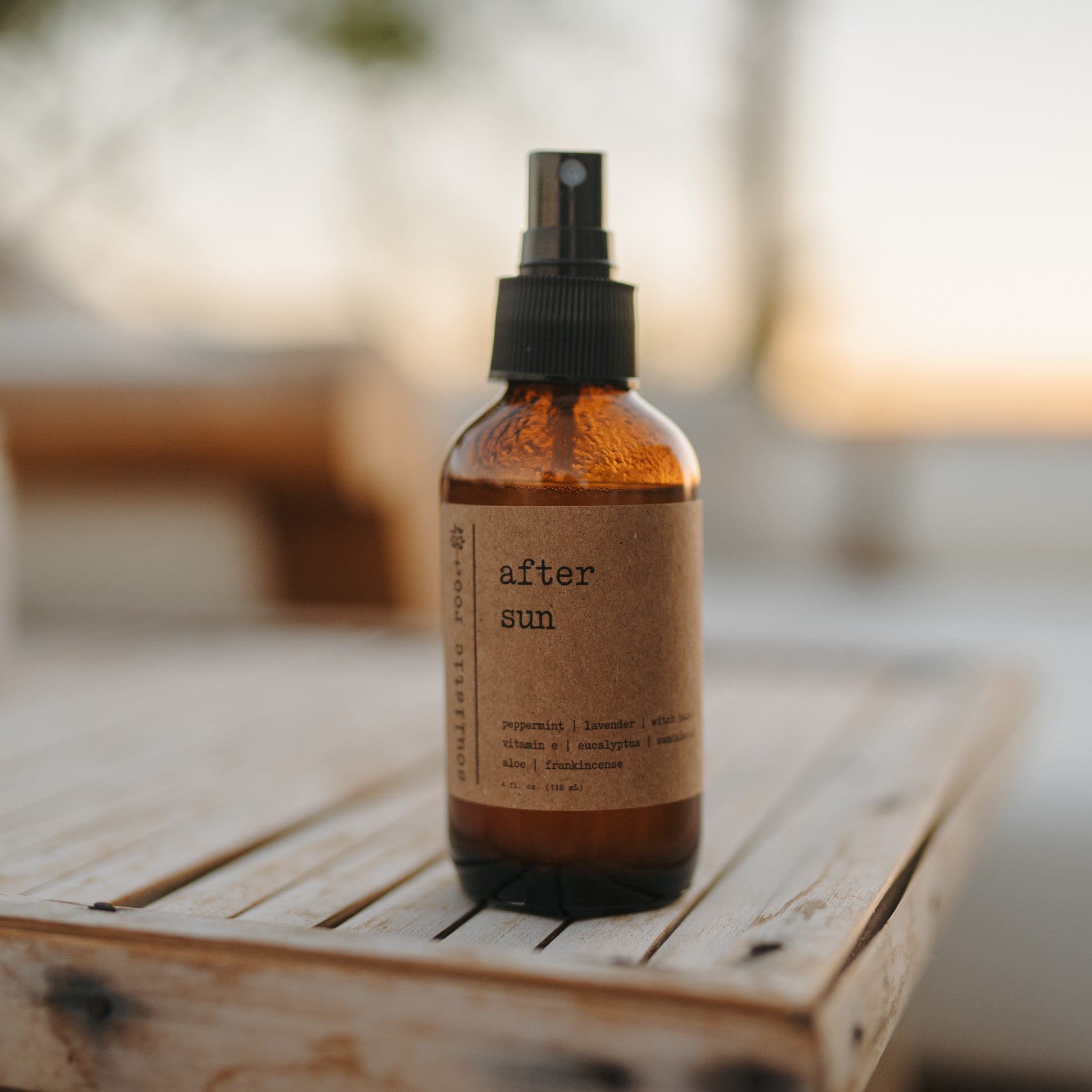 After a long day in the sun, use this calming After Sun spray. The nourishing formulation includes skin-loving botanicals like Witch Hazel and Aloe Vera. The addition of peppermint, lavender, eucalyptus, sandalwood, and frankincense work together in synergy to replenish the skin. The cooling effect will soothe your sun-drenched skin, while natural healing oils provide fragrant hydration. Bring this product in your beach or pool bag for easy access and a post-sun glow. The natural oils can separate, so make sure to shake well before each use.