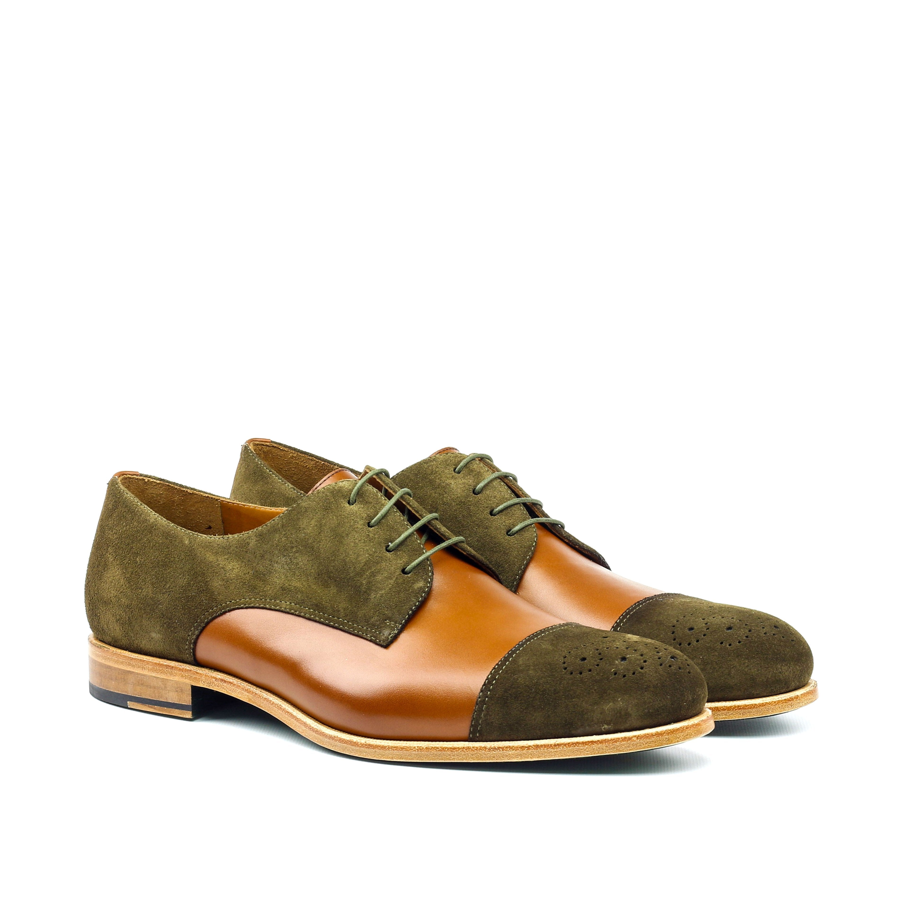 Upper Materials: Golden Brown Box calf + Green Lux Suede