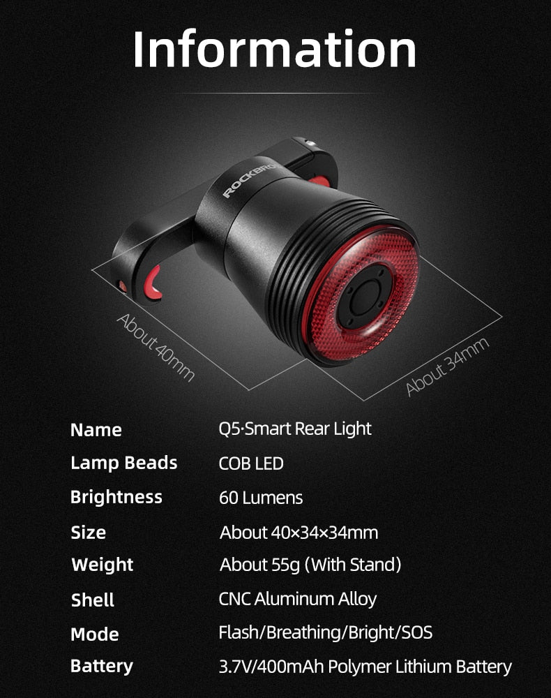 Smart Bicycle Brake Lights - Automatic Brake Sensing, Waterproof LED (Lights IPx6) LED Charging Cycling Taillights