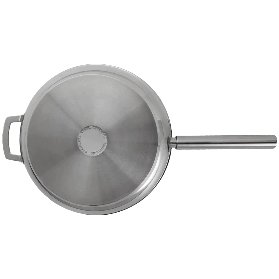 - Crafted from 100% recycled stainless steel and featuring a 100% recycled ceramic coating, this fry pan is both eco-friendly and high-performing.
