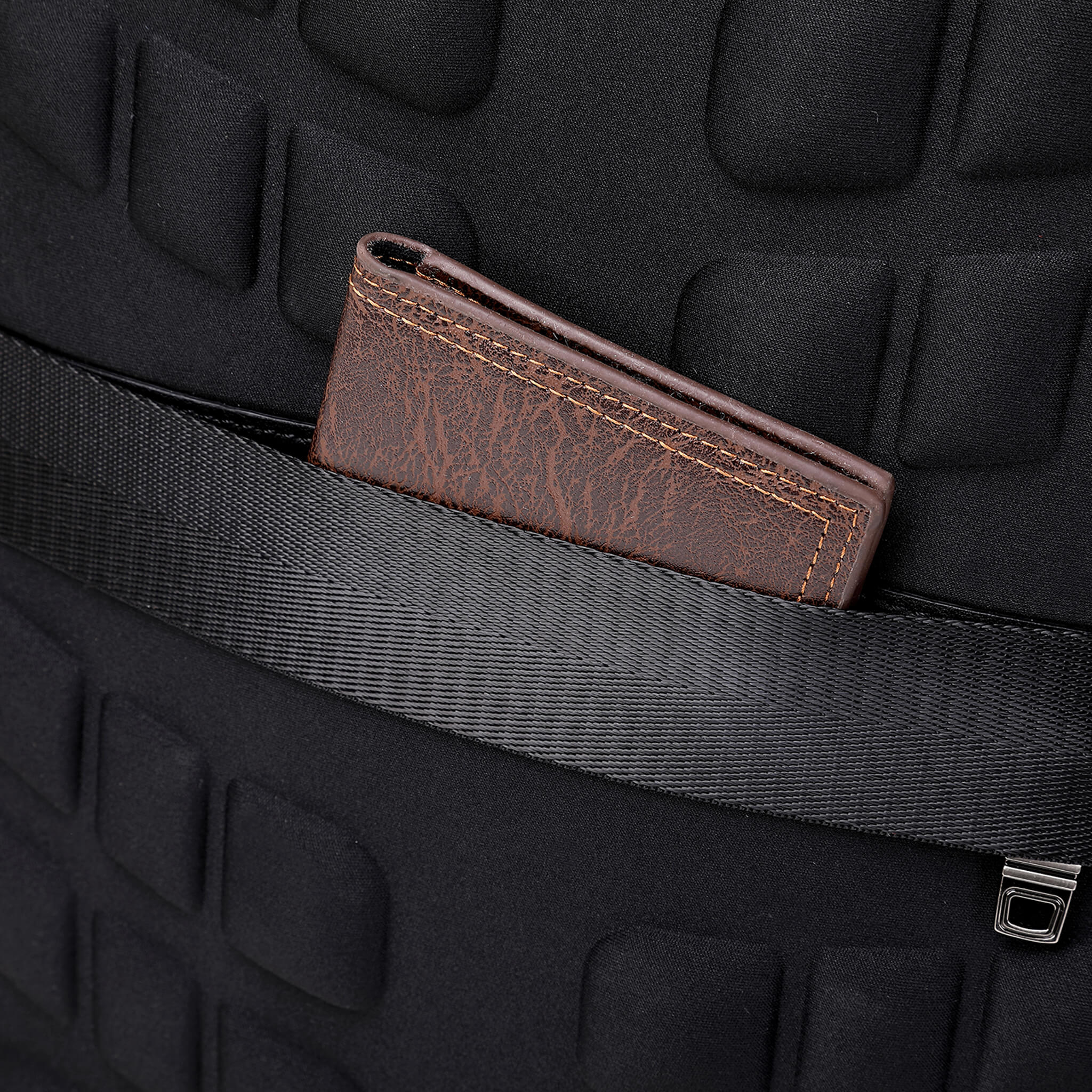 - Hidden security zip pocket on back panel for your mobile phone, wallet or passport;