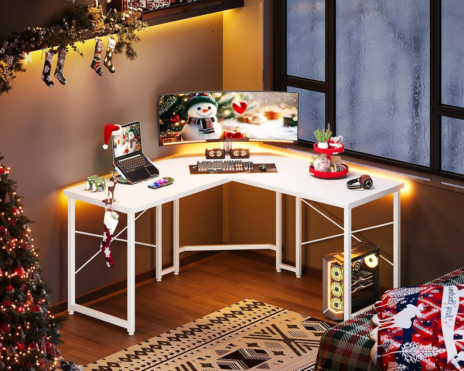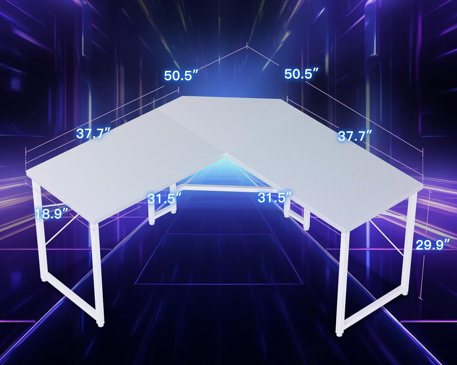 L Shaped Gaming Desk, Corner Desk Gaming Table for Home Office, Computer Desk Sturdy Writing Workstation for Small Space, Easy to Assemble, 51 Inch, Carbon Fiber Surface, White