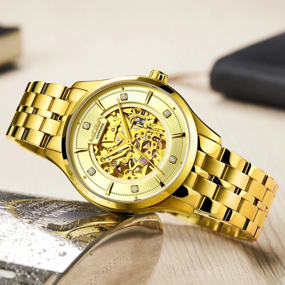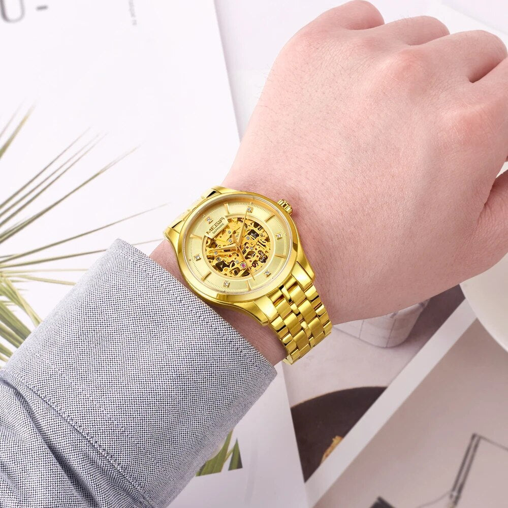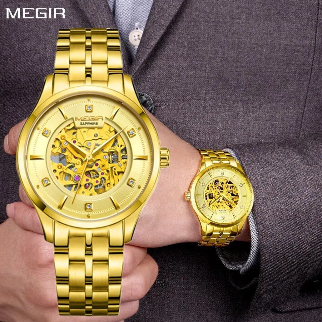 MEGIR Luxury Men Watches Waterproof Automatic Mechanical Watch Stainless Steel Sapphire Gold Business WristWatch Reloj Hombre