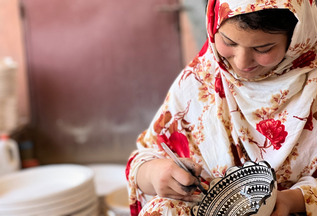 Safi, Morocco, an industrial port town on the rugged Atlantic coast, isn’t a place where tourists flock—but pottery lovers make pilgrimages there to see the stunning ceramics that Safiot artisans have made for centuries. These serving bowls, with their stunning geometric arabesques, are especially vivid examples of their art. From extracting local clay from the ground, to preparing it, molding it, drying it, shaping it, hand-painting it and firing it, they’re created completely by hand using ancient production methods. On your counter or dinner table, they'll add vibrant, timeless style to whatever you're serving.