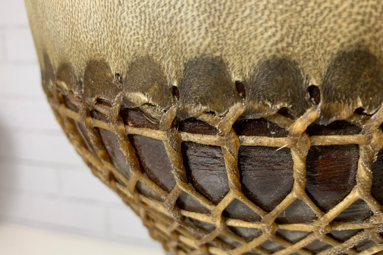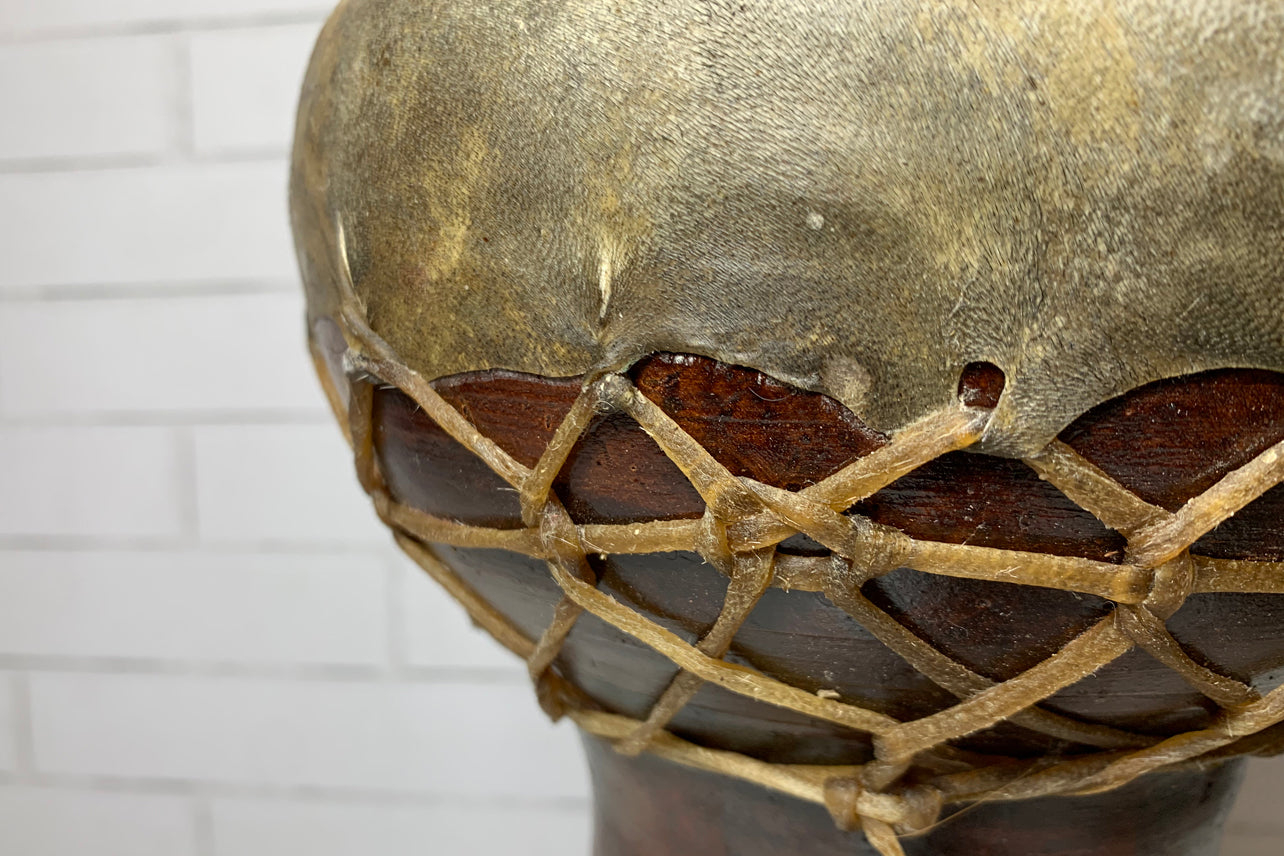 Also called the doumbek, the Moroccan Darbouka is a single-head drum. It is played held under the arm, or held sideways on the lap. Variations of this drum are found across North Africa and the Middle East.