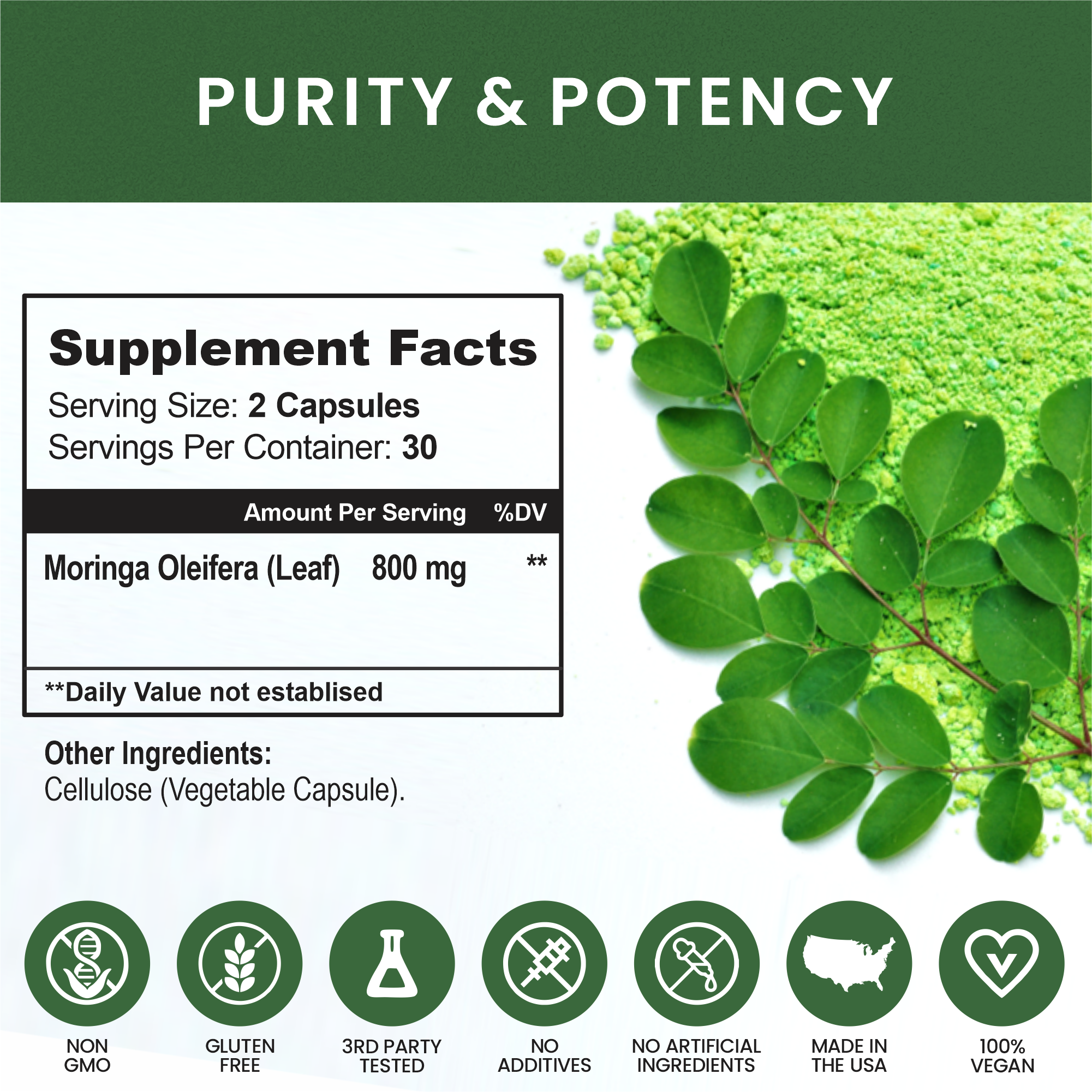 - 100% Highest Quality Satisfaction Guarantee: Our Moringa Capsules Are Made In The USA Following GMP Standards And Are Third-party Lab Tested. Whole Nature's Pure Moringa Supplement Is Non-GMO, Vegetarian And Contains No Additives. Not Happy, Contact Us Directly.