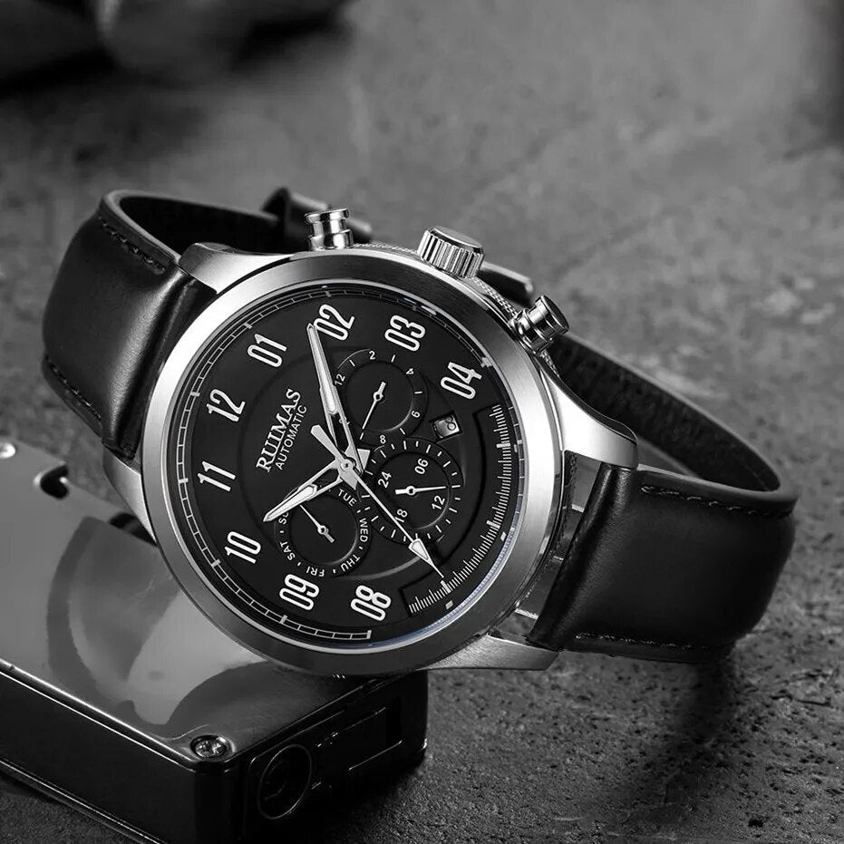RUIMAS Luxury Casual Sport Watch for Men's Automatic Mechanical Watches Leather Luminous Man Clock Wrist Watch Chronograph 6785