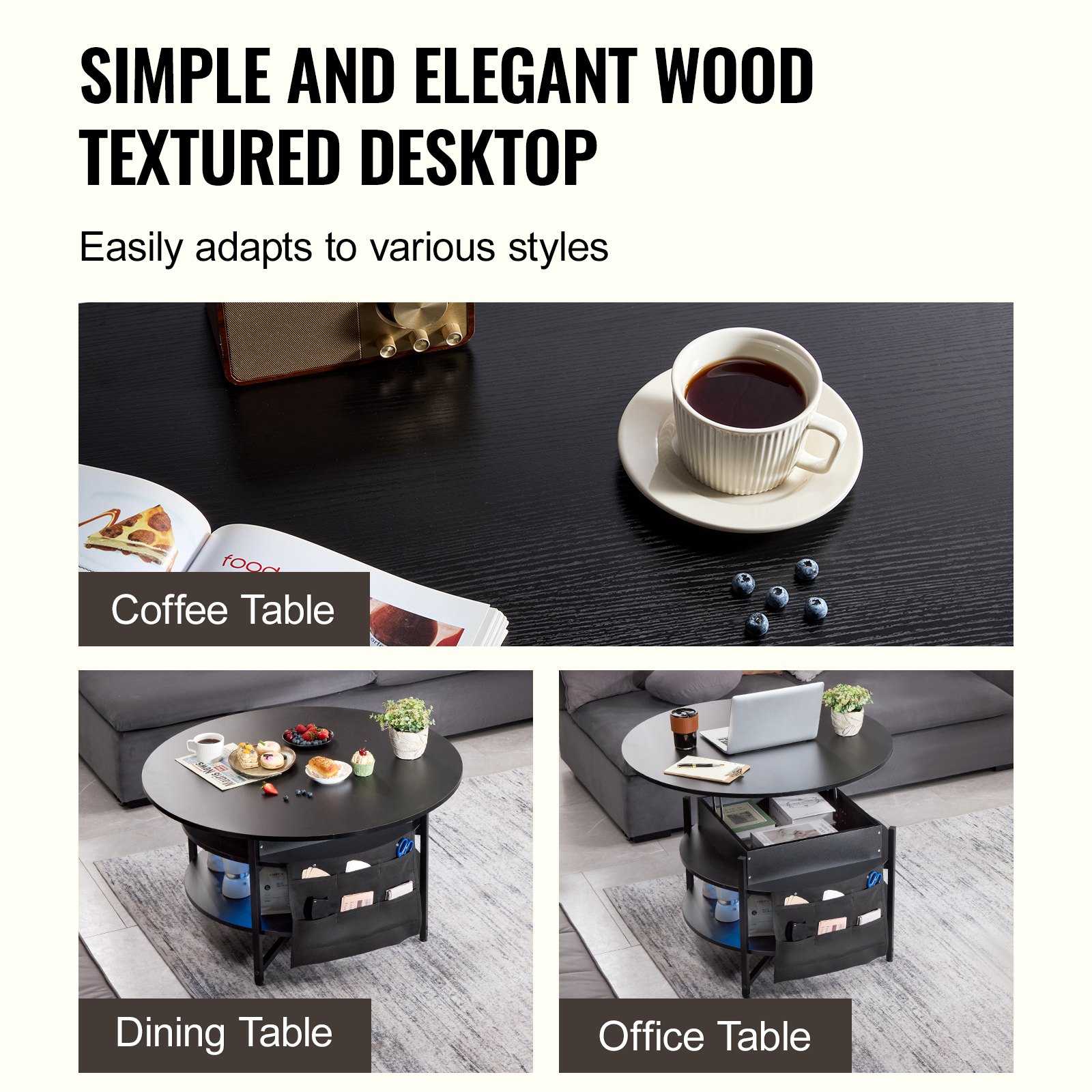 PRODUCT DESCRIPTION VEVOR Lift Top Coffee Table 35.3" Round Coffee Table for Living Room Black